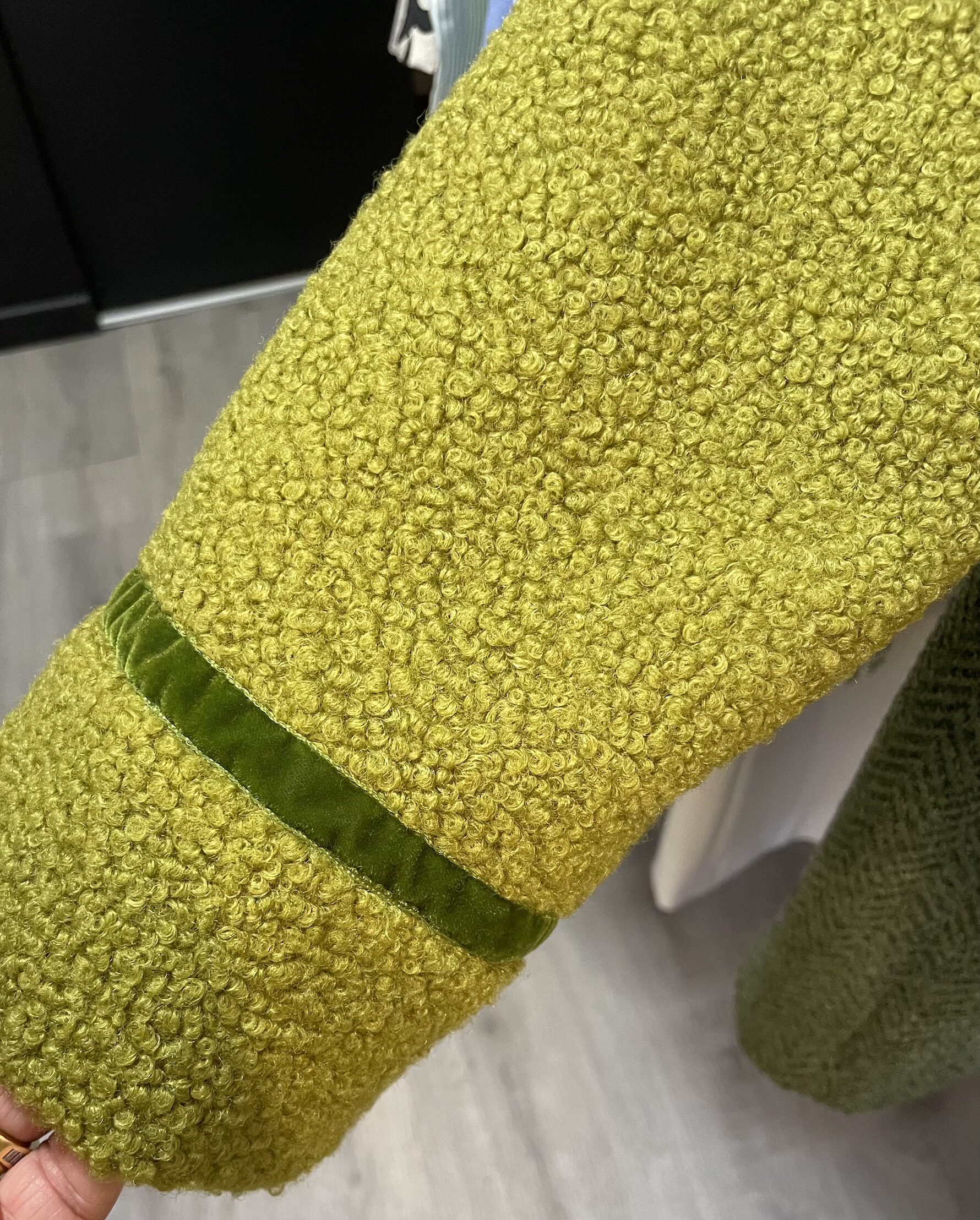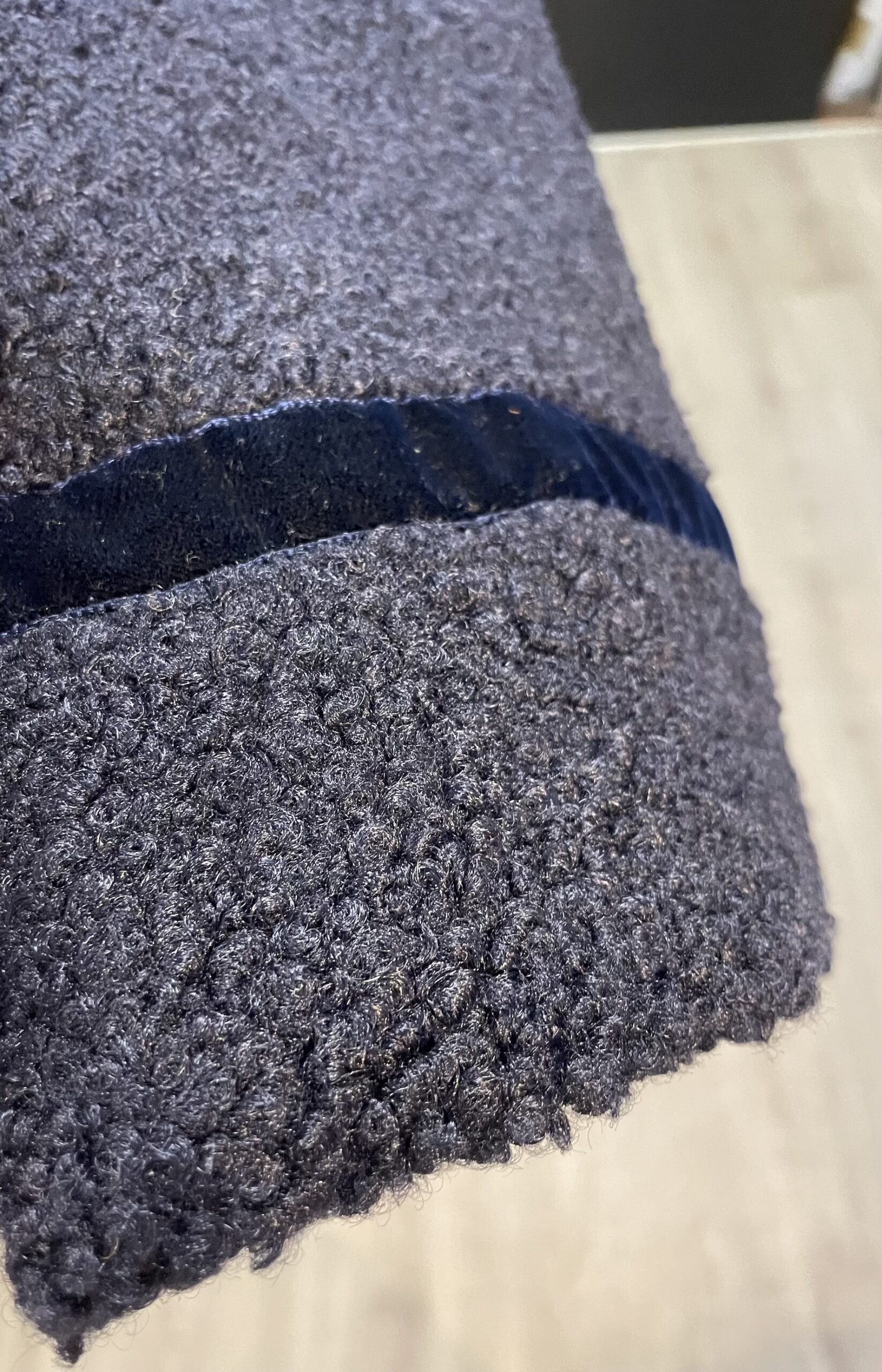 Giacca 100% lana tipo “orsetto” con bordi in velluto